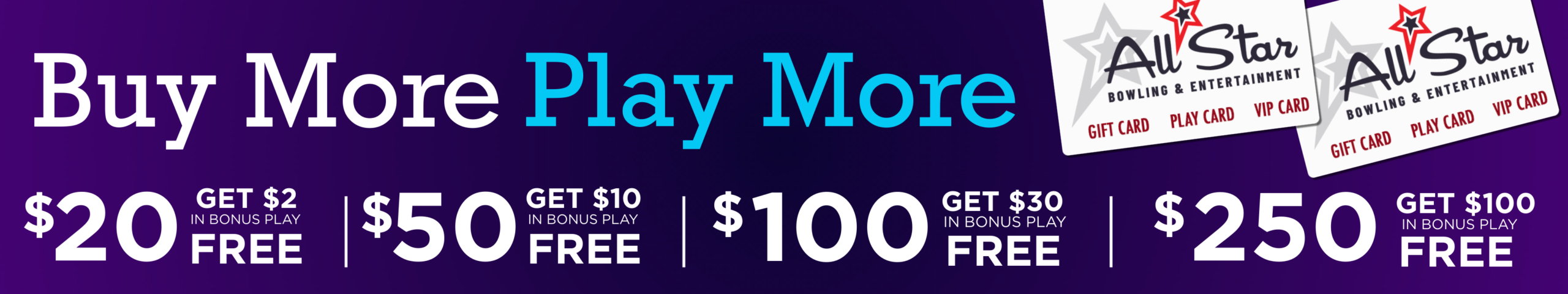 The All-Star Gift Card offers flexibility. You may purchase an All-Star Gift Card or e-Gift in our locations & online at allstarbowlingandentertainment.com for any flexible value you choose, from $5 to $500.